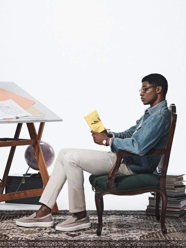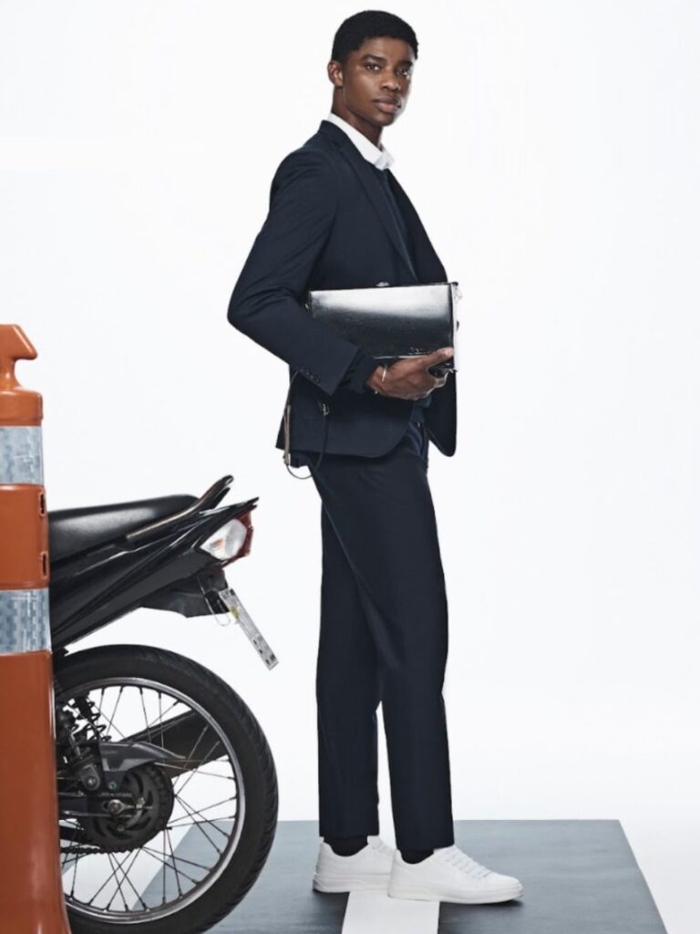 Rodrigo Somalia, em fotos de Gustavo Ipolito (M.Lages), direção de arte de André Pavanello, styling de Rafael Lazzini e beleza de Camila Ahn, na campanha de Inverno 2026 da grife Strike Calçados.